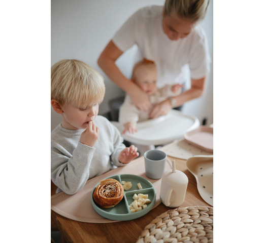 Dit siliconen bord van voedselkwaliteit heeft een zuignap die het op zijn plaats houdt, zodat er zo min mogelijk gemorst wordt terwijl je kleintjes zichzelf leren voeden.