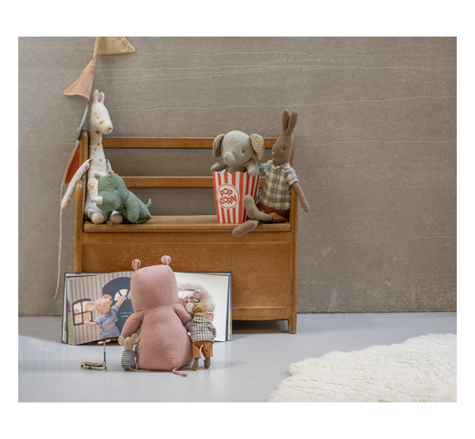 Safarivriend elephant small is gemaakt van de zachtste stof. Zij kan zelfstandig zitten door de korrelvulling. Zij wacht gewoon tot jij haar komt knuffelen.