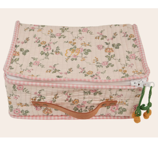 Crème-roze koffer van biologisch katoen met een vintage-geïnspireerde bloemenprint.