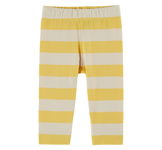 Legging van biologisch katoen en elastaanjersey met brede crèmekleurige en gele strepen.