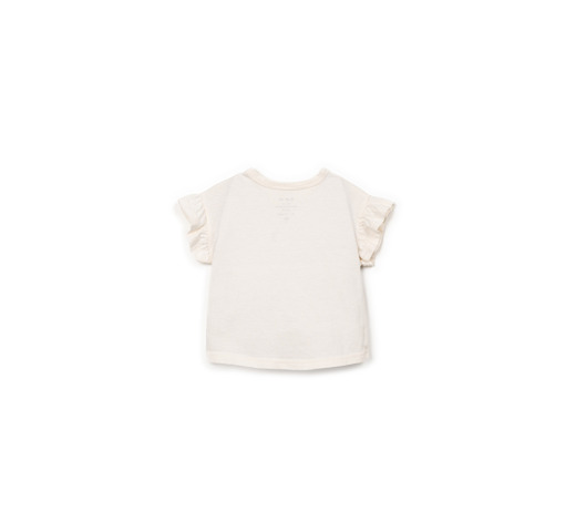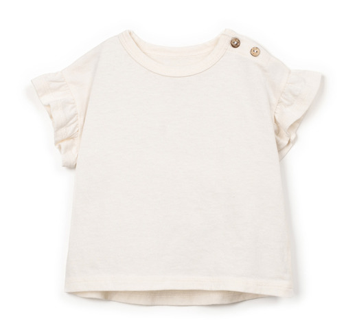 Dit T-shirt is gemaakt van een mix van biologisch en gerecycled katoen en is roze van kleur. Het heeft korte, geplooide mouwen, een ronde halslijn en een opening bij de schouder met kokosnootknopen.