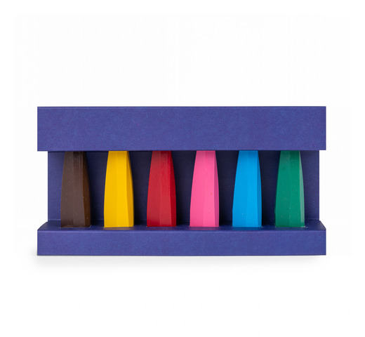 Doos met 6 waskrijtjes voor beginnende kunstenaars! Hun unieke vorm zorgt voor een perfecte grip en vloeiende lijnen, ideaal om kleuren te ontdekken. De waskrijtjes zijn gemaakt met bijenwas, geven geen vlekken op de handen en zijn gemakkelijk afwasbaar.