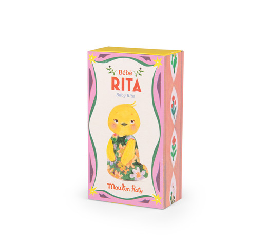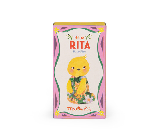 Baby Rita neuriet en zingt 's nachts uit volle borst in haar mooie, afneembare slaapzak met klittenbandsluiting en bloemenmotief. Met haar beweegbare beentjes kan ze rechtop zitten om te spelen. Wat een blije kleine Rita!
