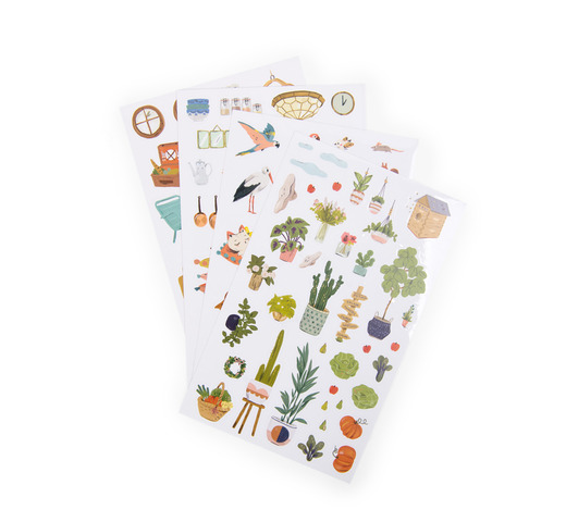 Een kleurboek van 20 pagina's met delicate zwarte potloodtekeningen en illustraties van Lucille Michieli, die verschillende ruimtes tot leven brengen met 145 kleurrijke stickers. Inclusief 5 vellen met dieren, voorwerpen, meubels en planten om op te plakken en je eigen werelden te creëren.