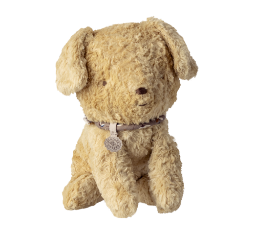 Schattige puppy. Gemaakt van exclusieve materialen die het hondje een prachtige vintage look en een zachte aanraking geven. Vergeet niet de accessoires voor je nieuwe beste vriend erbij te bestellen.