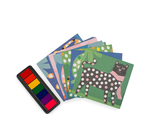 Een leuke en zintuiglijke manier om jezelf met je vingers uit te drukken! Gebruik het 7-kleuren inktkussen om de 10 illustraties uit de Toupitis-collectie met je vingers te schilderen.