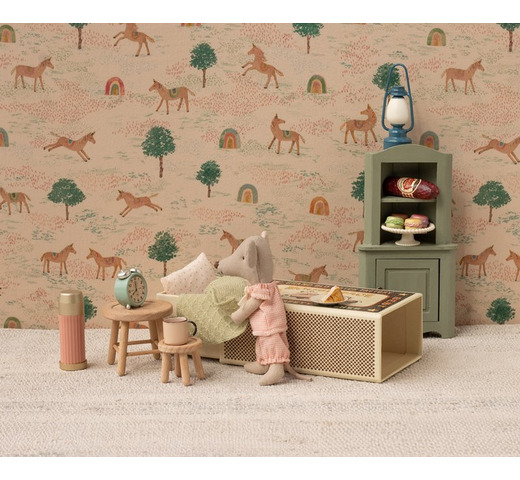 Little sister mouse en haar schattig slaapdoosje.