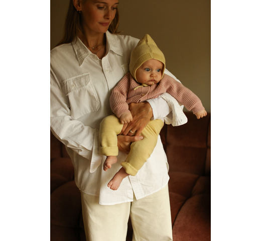 Een naadloos gebreide muts met een schattig klein puntje dat tevoorschijn komt als je hem draagt. Deze muts biedt ultiem comfort en warmte voor je kindje en is perfect voor zowel binnen als buiten.