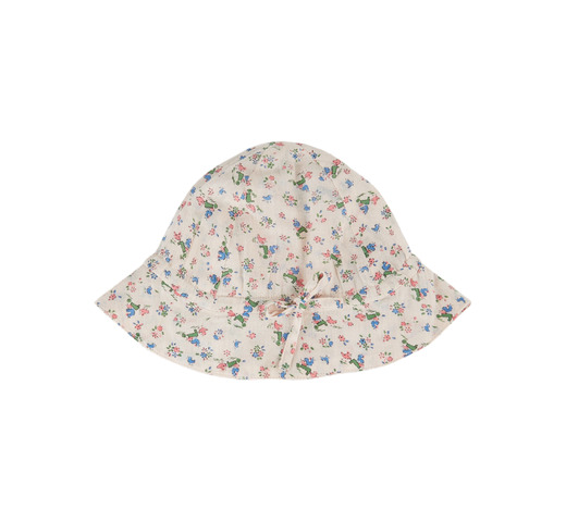Lichtroze katoenen hoed met veelkleurige patronen in landelijke stijl.