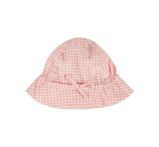 Lichtroze katoenen hoed met veelkleurige patronen in landelijke stijl.